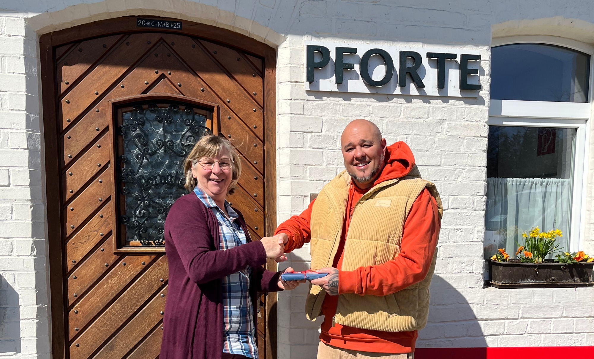 Sabine Rau: „Ein herzliches Dankeschön für zehn Jahre im Pforten- und Fahrdienst. Du bist ein geschätzter Kollege und für unsere Bewohner*innen ein wichtiger Zuhörer. Die Arbeit in unserer Pforte ist ein wichtiger Pfeiler und oftmals das Eingangstor in unsere Einrichtung. Egal ob im Pfortendienst oder im Fahrdienst, die Freude an Deiner Arbeit ist deutlich spürbar. Dir ist nichts zu viel und Deine Bereitschaft, auch mal einzuspringen, ist da. Für all das, möchten wir Dir heute Danke sagen und hoffen auf viele weitere Jahre mit Dir gemeinsam am DORNAHOF.“