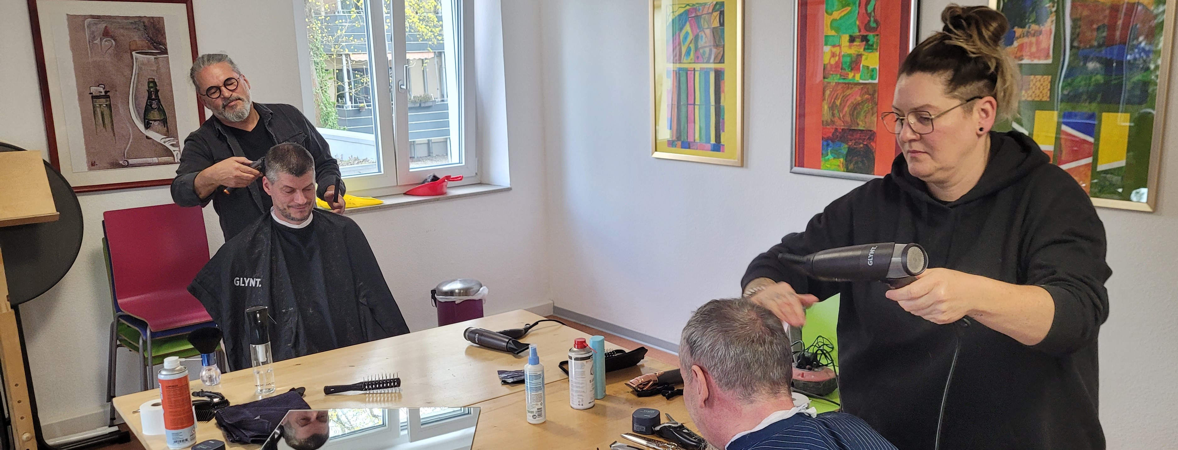 Am 23.03.2026 war Marc Assenheimer von den Barber Angels mit seiner Kollegin Carolin Spies in der DORNAHOF Tübingen Tagesstätte im Männerwohnheim. 18 Personen (15 Männer und drei Frauen) bekamen neue Frisuren und freuten sich darüber riesig. Wir danken den Barber Angels herzlich für ihr Engagement!