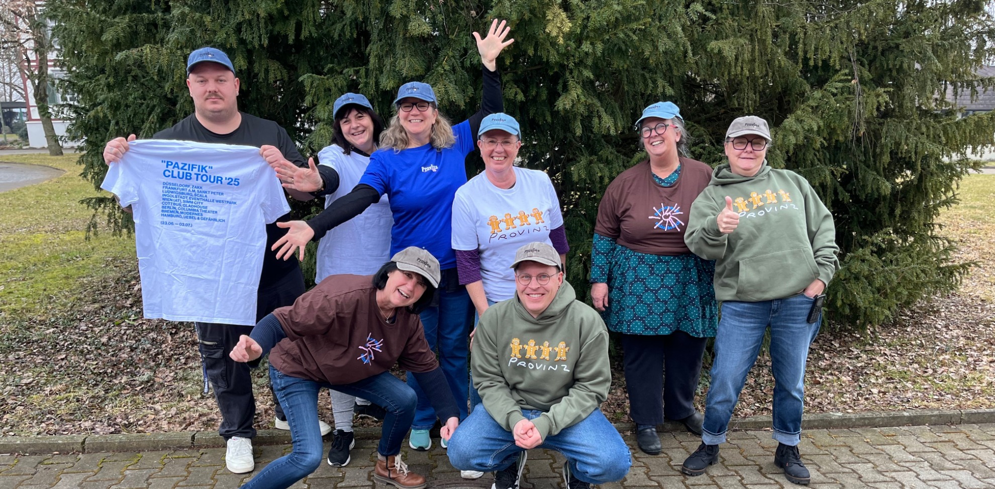 Wir hoffen, dass die Band Provinz auch zu einem Fan unseres Einrichtungsverbunds DORNAHOF geworden ist! Um die Privatsphäre unserer Klient*innen zu schützen, zeigen sich auf dem Foto stellevertretend unsere Mitarbeitenden der Stationären Hilfen im Provinz-Outfit.