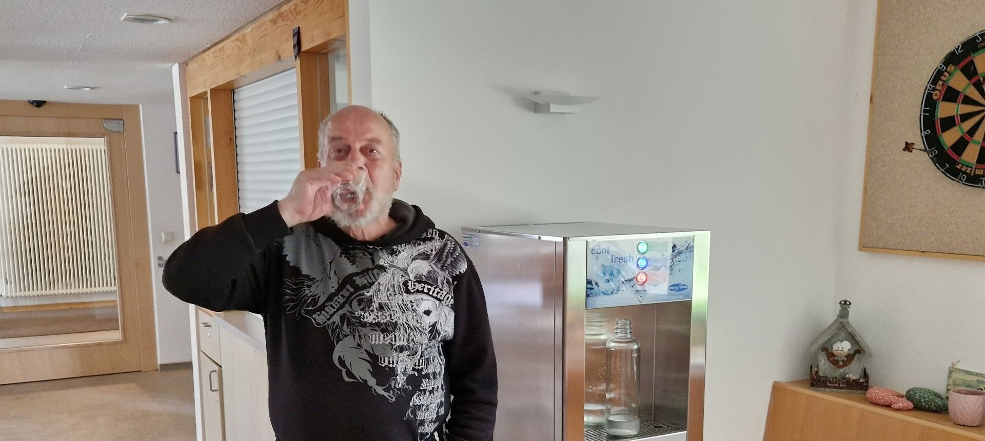 Zwei Wasserspender stehen seit Anfang Juni für Bewohnerinnen und Bewohner in den Aufenthaltsräumen der Stationären Hilfen Altshausen zur Verfügung. Und sie werden eifrig genutzt.