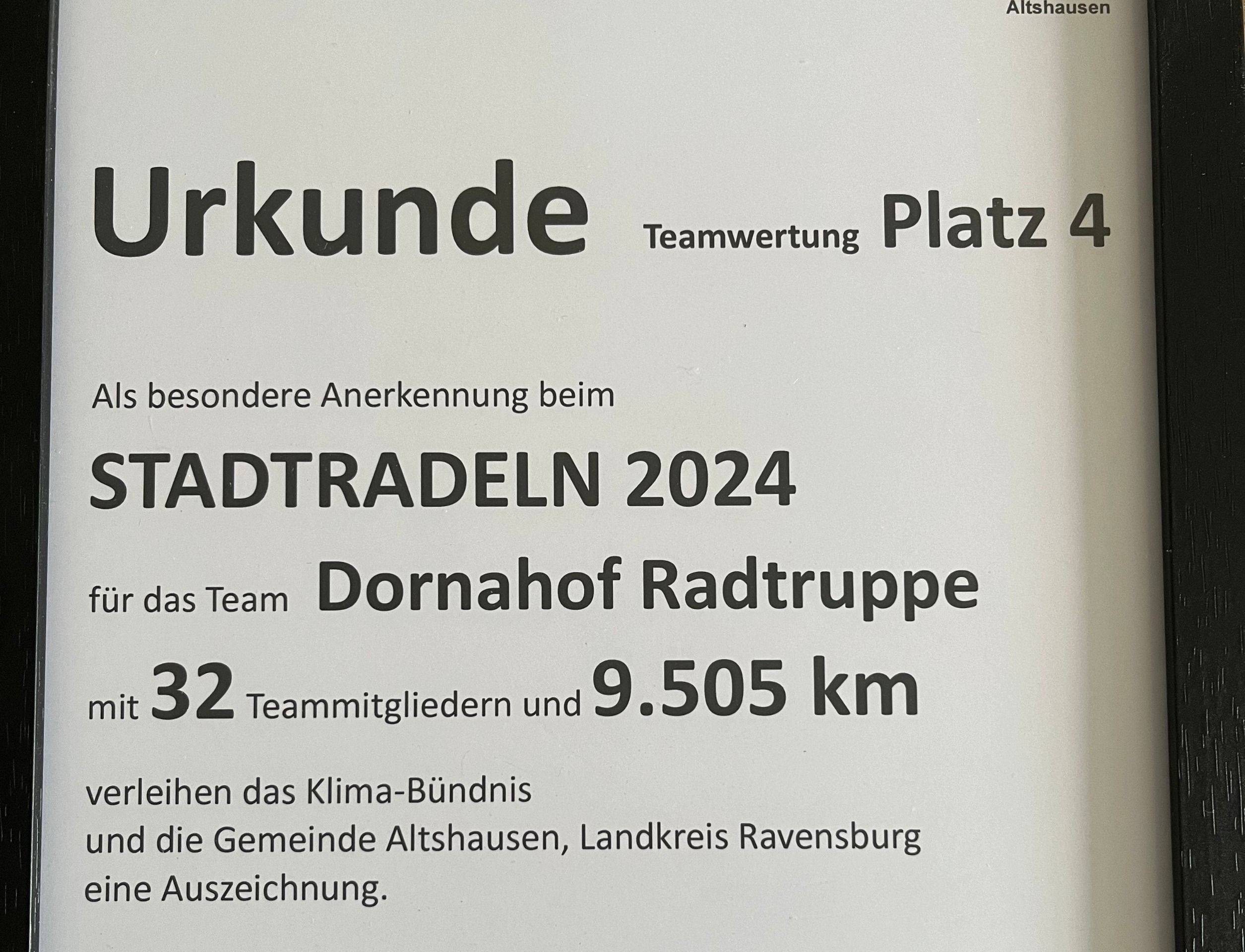 Gratulation zum 4. Platz beim Stadtradeln