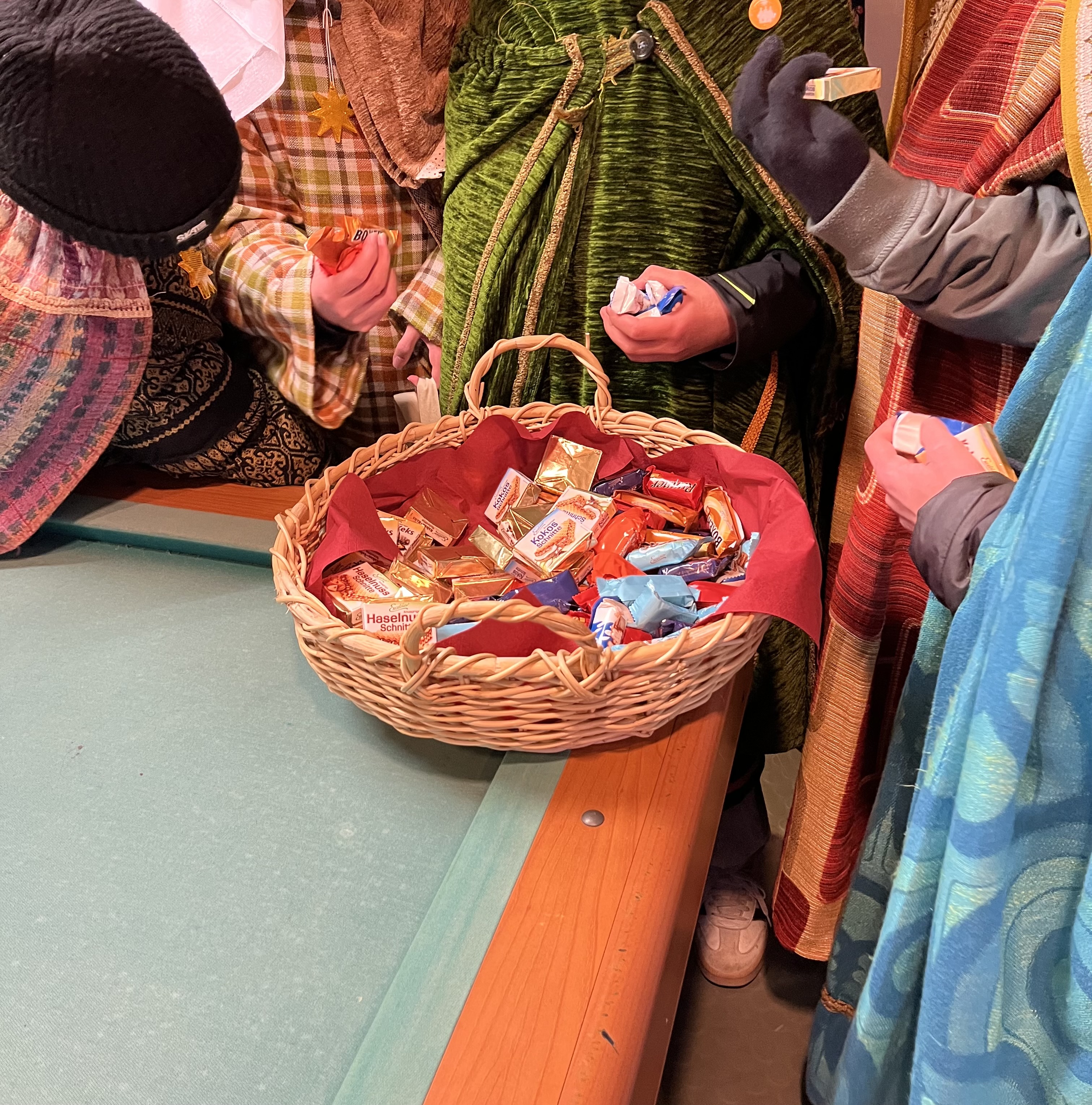 Am ersten Januar bekam der DORNAHOF Altshausen Besuch von den Sternsingern. Den Tag über hatten die Sternsinger, verteilt auf zwei Gruppen, in den Orten des Verwaltungsverbands Altshausen ihren Segen verteilt. Am DORNAHOF trafen die Gruppen dann mit insgesamt elf Sternsingern aufeinander und wurden in der Freizeit der Stationären Angebote von Mitarbeitenden sowie Bewohnerinnen und Bewohnern empfangen und mit Kinderpunsch und Süßigkeiten versorgt. Der Segen wurde am Freizeitgebäude angebracht. Ein herzliches Dankeschön an die Sternsinger, die in diesem Jahr für ein Projekt gegen Kinderarbeit – für Schule statt Fabrik sammelten.